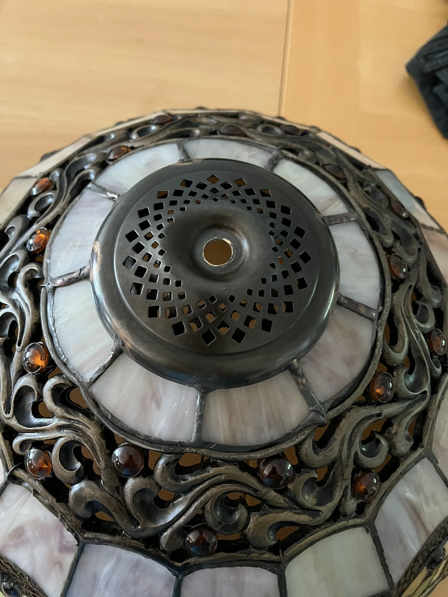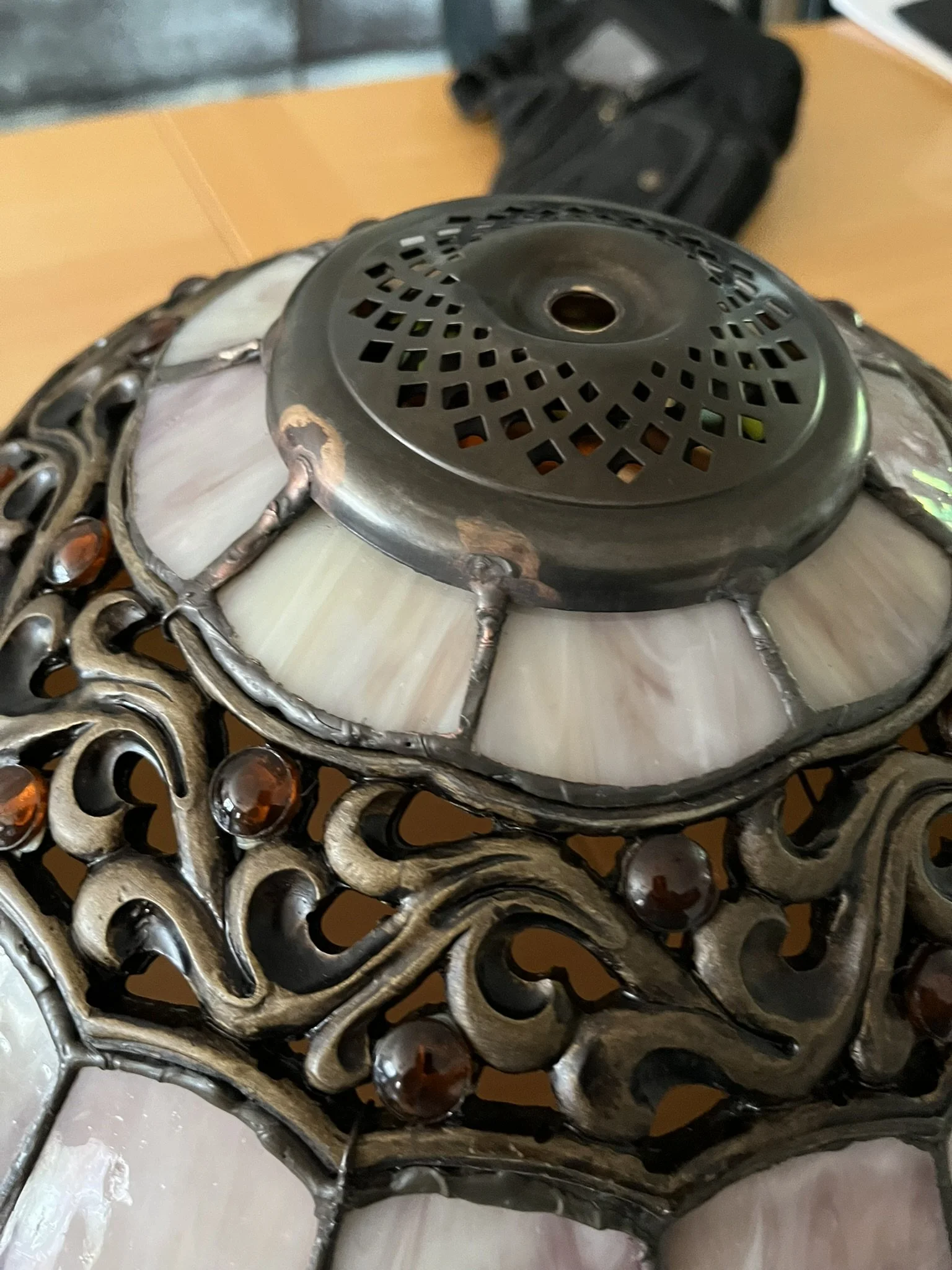 This client had a Tiffany style shade that was knocked over breaking the soldering of the vent cap. I was able to repair this shade so that it could be enjoyed again.